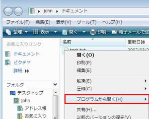 拡張子が見えるようになった。次に関連付けを変更したいファイル右クリックし、「プログラムから開く」を選ぶ。