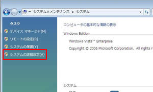 画面の左側にある「システムの詳細設定」をクリックして、設定画面を開く。