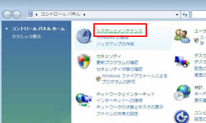 「スタート」→「コントロールパネル」を開き、「システムとメンテナンス」をクリック。