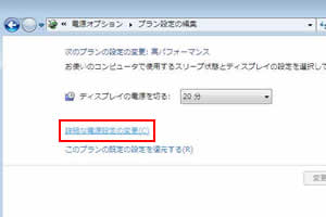 プラン設定の変更画面が表示されたら、「詳細な電源設定の変更」をクリック。