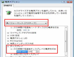 液晶パネルは電源のオン・オフにかかるる負担が大きいので、「ディスプレイ」の電源オフ設定も20分から120分に変更。