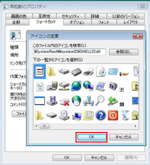 画面5の「ショートカット」タブで「アイコンの変更」をクリックしたら、同じようして、アイコンも可能。